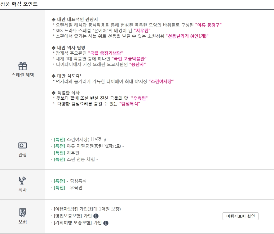 [모두투어][MODE LITE] 타이페이/야류/지우펀/스펀 3일