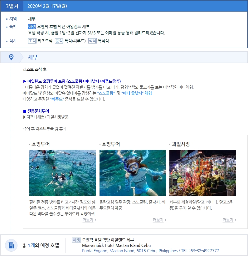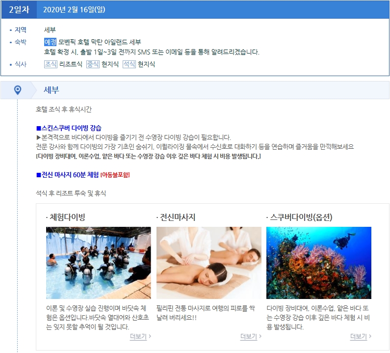 조식:리조트식/중식:특식(씨푸드)/석식:특석식