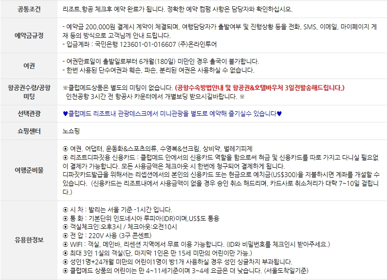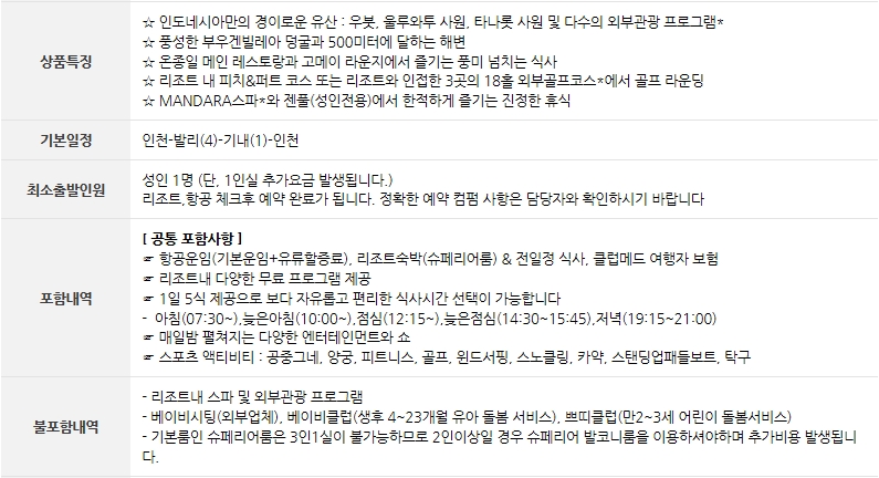 [온라인투어][프리미엄 올-인클루시브] 지정일특가! 발리 클럽메드 6일(가루다항공)