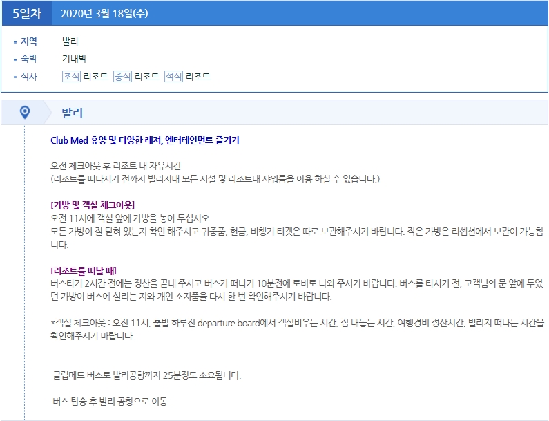 중식:기내식/석식:리조트